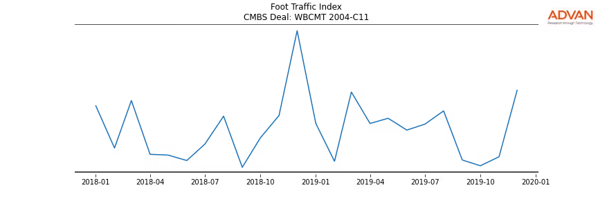 Advan Research computes accurate daily foot-traffic for all the properties and loans of the WBCMT 2004-C11 deal. Here is the foot-traffic aggregated across all the properties of the deal: