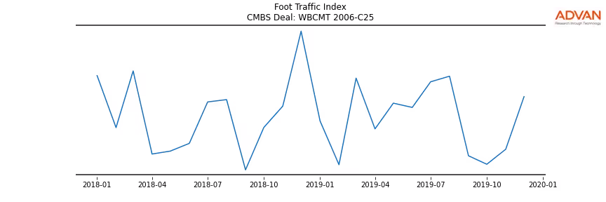 Advan Research computes accurate daily foot-traffic for all the properties and loans of the WBCMT 2006-C25 deal. Here is the foot-traffic aggregated across all the properties of the deal: