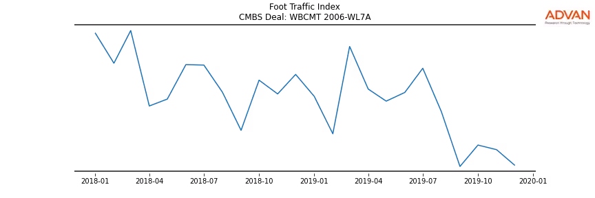 Advan Research computes accurate daily foot-traffic for all the properties and loans of the WBCMT 2006-WL7A deal. Here is the foot-traffic aggregated across all the properties of the deal: