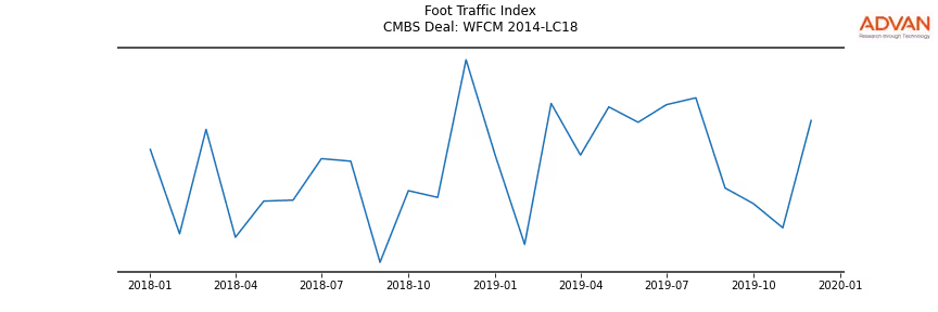 Advan Research computes accurate daily foot-traffic for all the properties and loans of the WFCM 2014-LC18 deal. Here is the foot-traffic aggregated across all the properties of the deal: