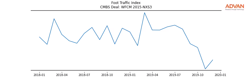 Advan Research computes accurate daily foot-traffic for all the properties and loans of the WFCM 2015-NXS3 deal. Here is the foot-traffic aggregated across all the properties of the deal:
