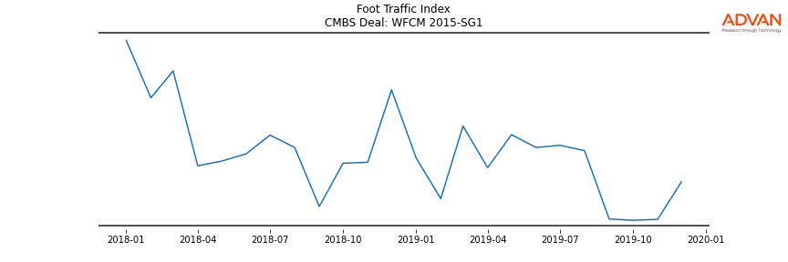 Advan Research computes accurate daily foot-traffic for all the properties and loans of the WFCM 2015-SG1 deal. Here is the foot-traffic aggregated across all the properties of the deal: