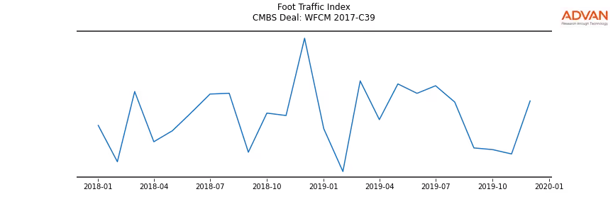 Advan Research computes accurate daily foot-traffic for all the properties and loans of the WFCM 2017-C39 deal. Here is the foot-traffic aggregated across all the properties of the deal: