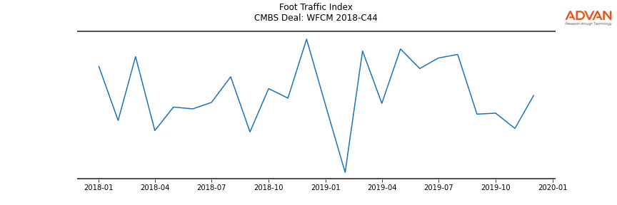 Advan Research computes accurate daily foot-traffic for all the properties and loans of the WFCM 2018-C44 deal. Here is the foot-traffic aggregated across all the properties of the deal: