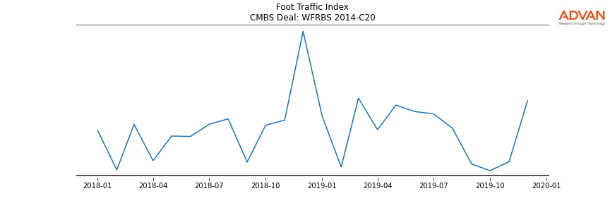Advan Research computes accurate daily foot-traffic for all the properties and loans of the WFRBS 2014-C20 deal. Here is the foot-traffic aggregated across all the properties of the deal: