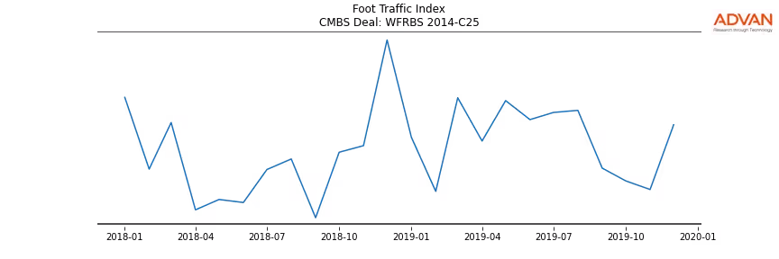 Advan Research computes accurate daily foot-traffic for all the properties and loans of the WFRBS 2014-C25 deal. Here is the foot-traffic aggregated across all the properties of the deal: