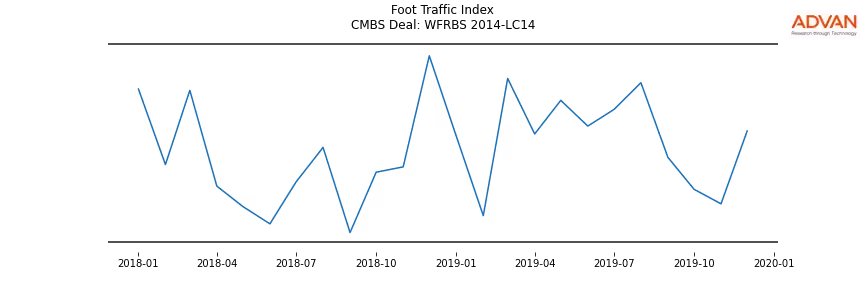 Advan Research computes accurate daily foot-traffic for all the properties and loans of the WFRBS 2014-LC14 deal. Here is the foot-traffic aggregated across all the properties of the deal:
