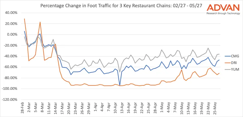 a 60% fall in foot traffic at the nadir and Chipotle a 70% drop.