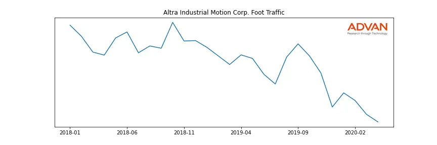 Altra Industrial Motion Corp. along with another 301 companies belongs to the Advan Industrials. The following chart shows the foot traffic index on this sector.