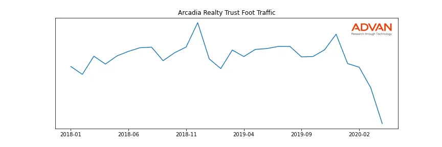 Arcadia Realty Trust along with another 180 companies belongs to the Advan Real Estate. The following chart shows the foot traffic index on this sector.
