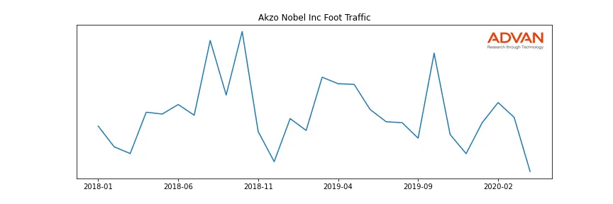 Akzo Nobel Inc along with another 166 companies belongs to the Advan Materials. The following chart shows the foot traffic index on this sector.