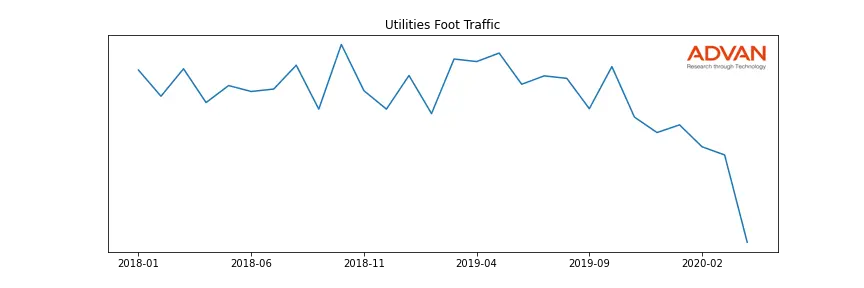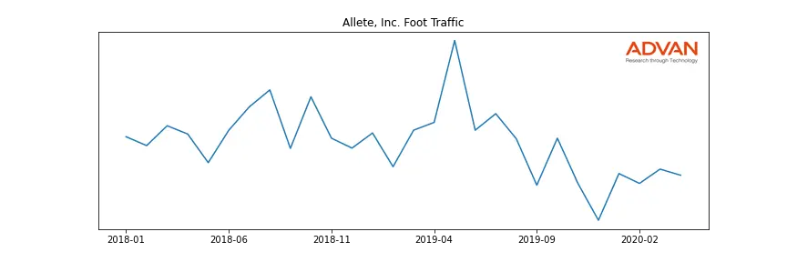 Allete, Inc. along with another 34 companies belongs to the Advan Utilities. The following chart shows the foot traffic index on this sector.