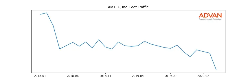 AMTEK, Inc. along with another 301 companies belongs to the Advan Industrials. The following chart shows the foot traffic index on this sector.