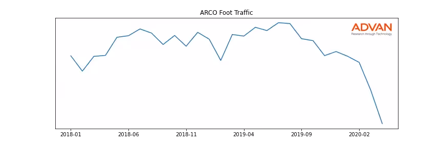 ARCO along with another 109 companies belongs to the Advan Energy. The following chart shows the foot traffic index on this sector.