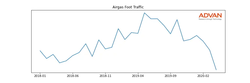 Airgas along with another 166 companies belongs to the Advan Materials. The following chart shows the foot traffic index on this sector.