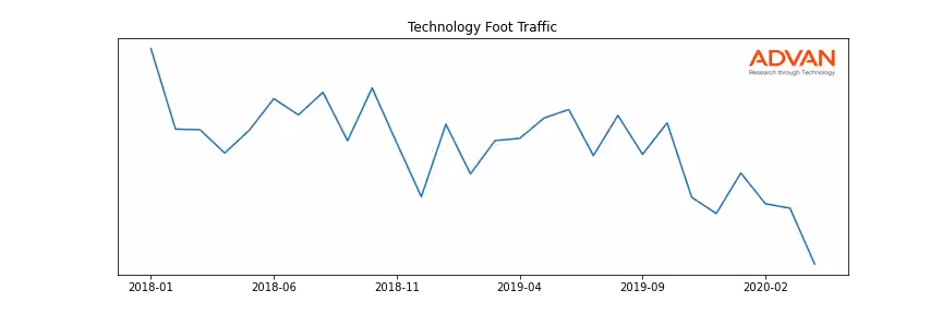 ASML Holding N.V. along with another 11 companies belongs to the Advan Technology. The following chart shows the foot traffic index on this sector.