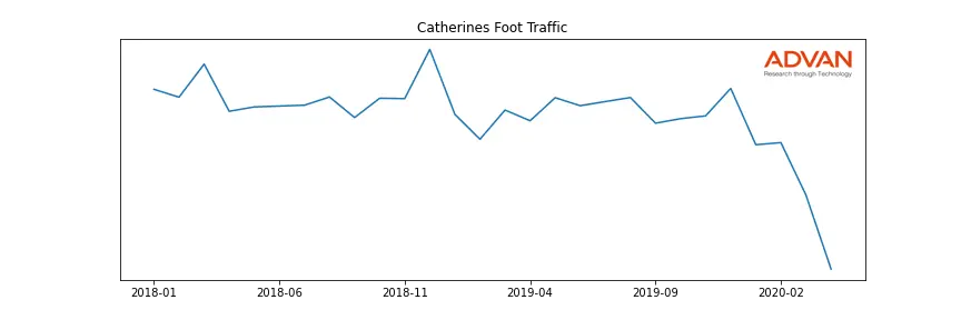 Catherines along with another 1766 companies belongs to the Advan Consumer Discretionary. The following chart shows the foot traffic index on this sector.