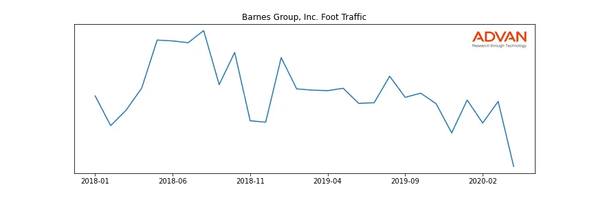 Barnes Group, Inc. along with another 301 companies belongs to the Advan Industrials. The following chart shows the foot traffic index on this sector.
