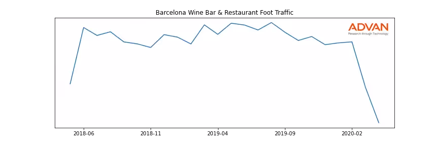 Barcelona Wine Bar & Restaurant along with another 1766 companies belongs to the Advan Consumer Discretionary. The following chart shows the foot traffic index on this sector.