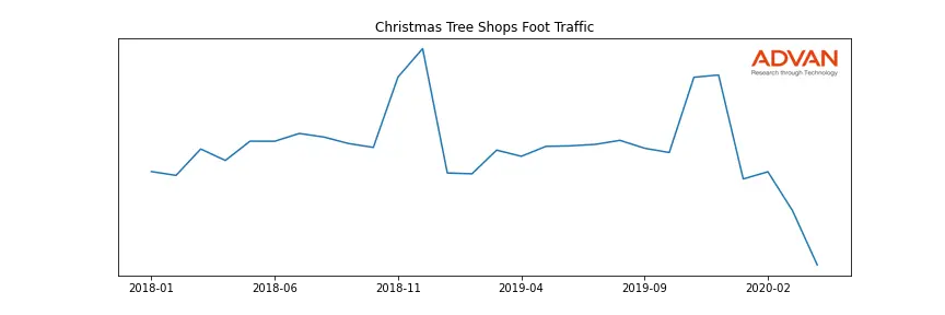 Christmas Tree Shops along with another 1766 companies belongs to the Advan Consumer Discretionary. The following chart shows the foot traffic index on this sector.