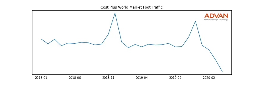 Cost Plus World Market along with another 1766 companies belongs to the Advan Consumer Discretionary. The following chart shows the foot traffic index on this sector.