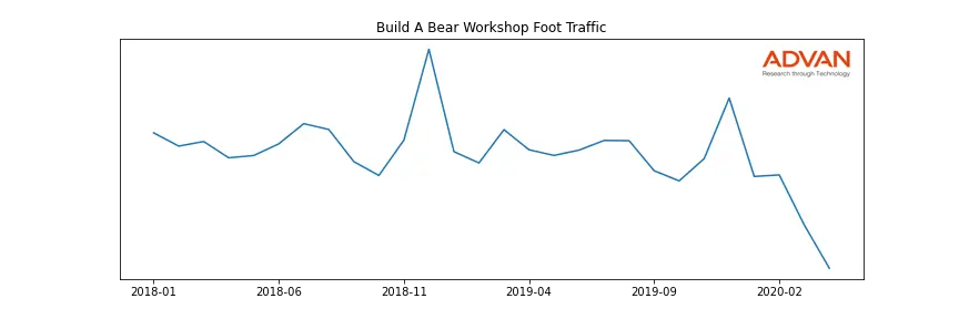Build A Bear Workshop along with another 1766 companies belongs to the Advan Consumer Discretionary. The following chart shows the foot traffic index on this sector.