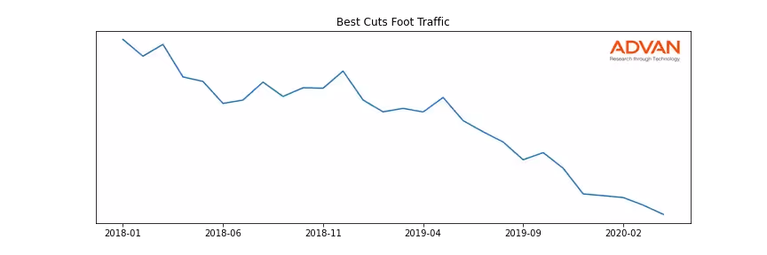 Best Cuts along with another 1766 companies belongs to the Advan Consumer Discretionary. The following chart shows the foot traffic index on this sector.