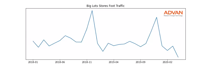 Big Lots Stores along with another 1766 companies belongs to the Advan Consumer Discretionary. The following chart shows the foot traffic index on this sector.