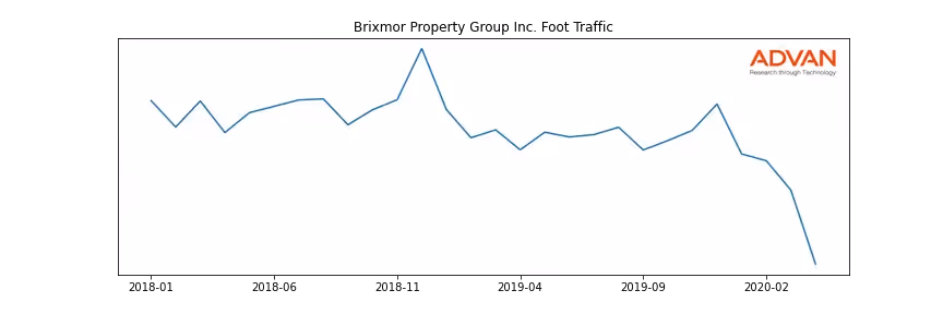 Brixmor Property Group Inc. along with another 180 companies belongs to the Advan Real Estate. The following chart shows the foot traffic index on this sector.