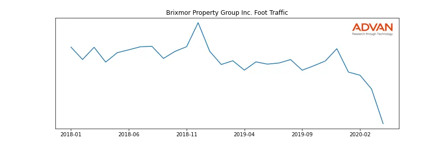 Brixmor Property Group Inc. along with another 180 companies belongs to the Advan Real Estate. The following chart shows the foot traffic index on this sector.