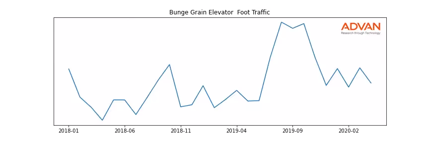 Bunge Grain Elevator along with another 360 companies belongs to the Advan Consumer Staples. The following chart shows the foot traffic index on this sector.