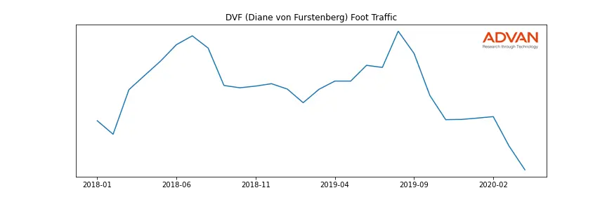 DVF (Diane von Furstenberg) along with another 1766 companies belongs to the Advan Consumer Discretionary. The following chart shows the foot traffic index on this sector.