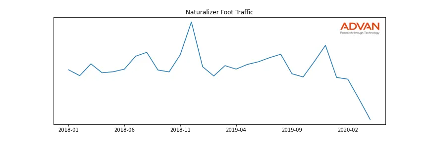 Naturalizer along with another 1766 companies belongs to the Advan Consumer Discretionary. The following chart shows the foot traffic index on this sector.