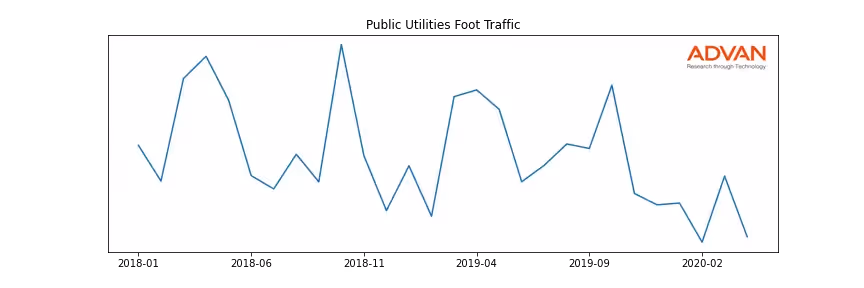 Calpine Corporation along with another 13 companies belongs to the Advan Public Utilities. The following chart shows the foot traffic index on this sector.