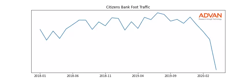 Citizens Bank along with another 150 companies belongs to the Advan Financials. The following chart shows the foot traffic index on this sector.