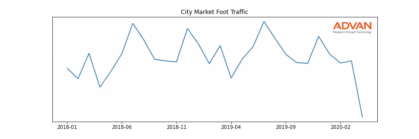 City Market along with another 360 companies belongs to the Advan Consumer Staples. The following chart shows the foot traffic index on this sector.