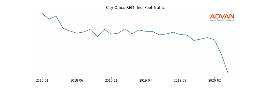 City Office REIT, Inc. along with another 180 companies belongs to the Advan Real Estate. The following chart shows the foot traffic index on this sector.