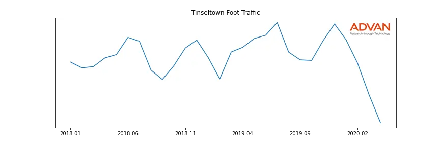 Tinseltown along with another 56 companies belongs to the Advan Communication Services. The following chart shows the foot traffic index on this sector.