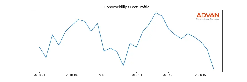 ConocoPhillips along with another 109 companies belongs to the Advan Energy. The following chart shows the foot traffic index on this sector.