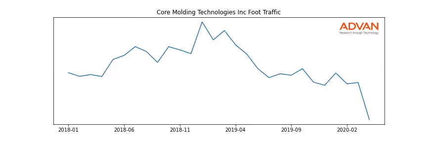 Core Molding Technologies Inc along with another 166 companies belongs to the Advan Materials. The following chart shows the foot traffic index on this sector.