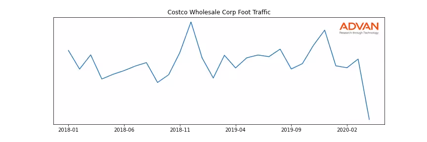 Costco Wholesale Corp along with another 360 companies belongs to the Advan Consumer Staples. The following chart shows the foot traffic index on this sector.