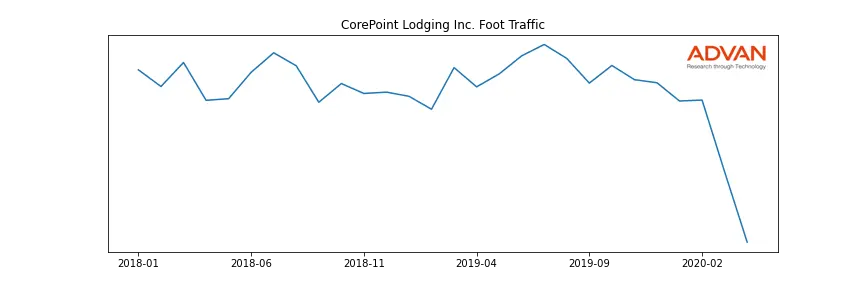 CorePoint Lodging Inc. along with another 180 companies belongs to the Advan Real Estate. The following chart shows the foot traffic index on this sector.