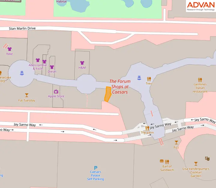 The top three locations of Versace that contribute the most traffic for the brand have approximately 67.3 of the firm’s overall footfall. Out of these, the store located at 3500 Las Vegas Boulevard South B05, The Forum Shops At Caesar'South Palace, Las Vegas, NV 89158 is the top performer in terms of people visited.