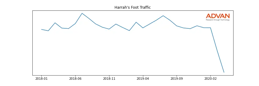 Harrah's along with another 1766 companies belongs to the Advan Consumer Discretionary. The following chart shows the foot traffic index on this sector.