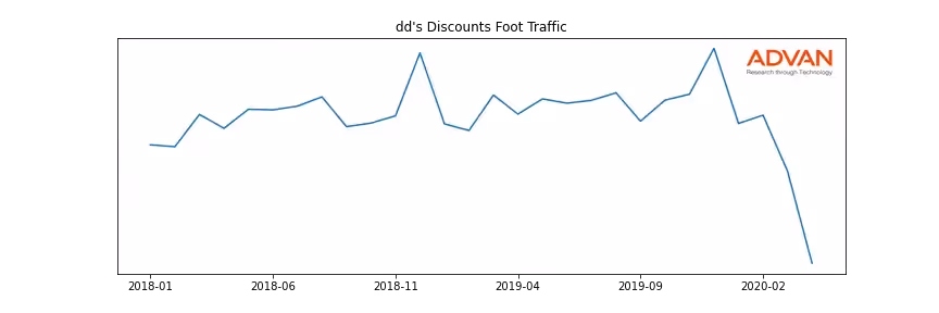 dd's Discounts along with another 1766 companies belongs to the Advan Consumer Discretionary. The following chart shows the foot traffic index on this sector.