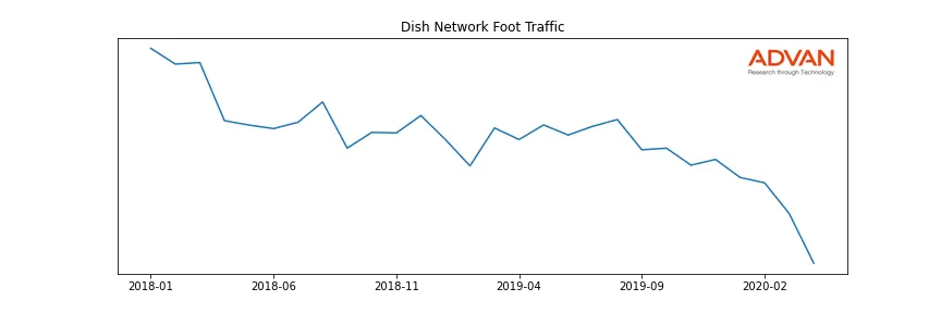 Dish Network along with another 56 companies belongs to the Advan Communication Services. The following chart shows the foot traffic index on this sector.