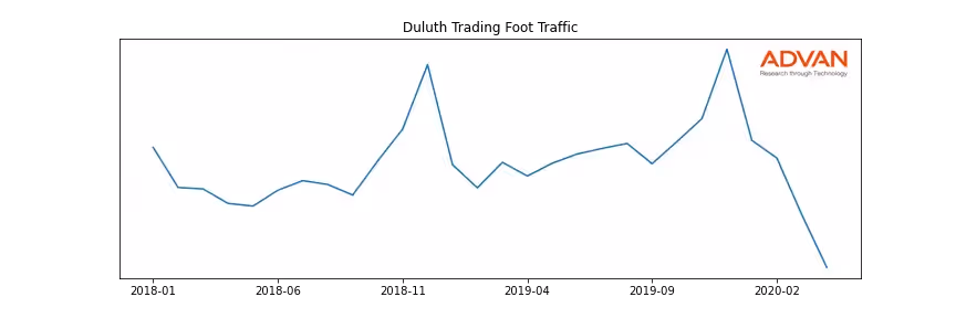 Duluth Trading along with another 1766 companies belongs to the Advan Consumer Discretionary. The following chart shows the foot traffic index on this sector.