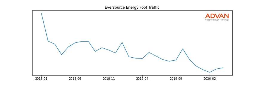 Eversource Energy along with another 34 companies belongs to the Advan Utilities. The following chart shows the foot traffic index on this sector.