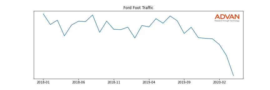 Ford along with another 1766 companies belongs to the Advan Consumer Discretionary. The following chart shows the foot traffic index on this sector.