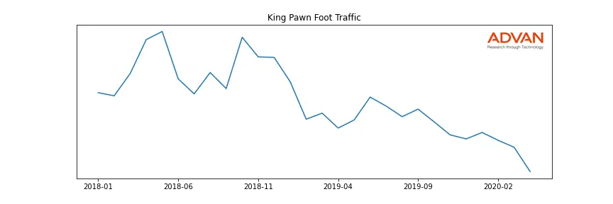 King Pawn along with another 150 companies belongs to the Advan Financials. The following chart shows the foot traffic index on this sector.